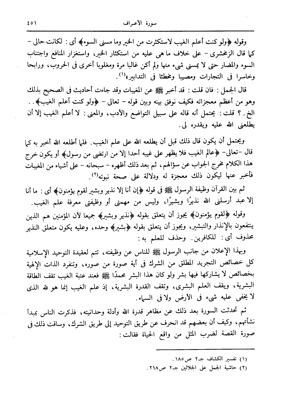 (2) حاشية الجمل على الجلالين ج 2 ص 218.