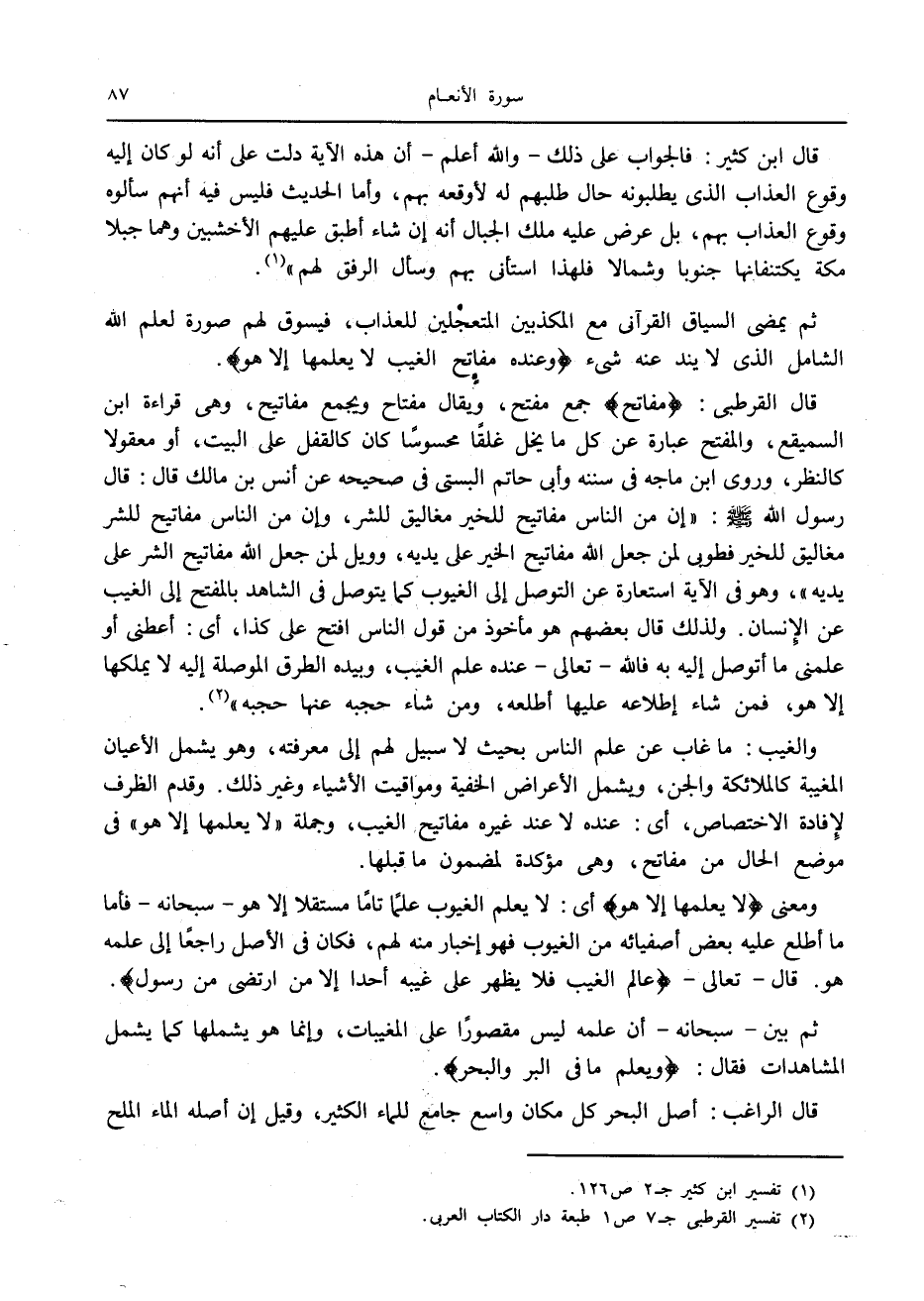 (2) تفسير القرطبي ج 7 ص 1 طبعة دار الكتاب العربي.
