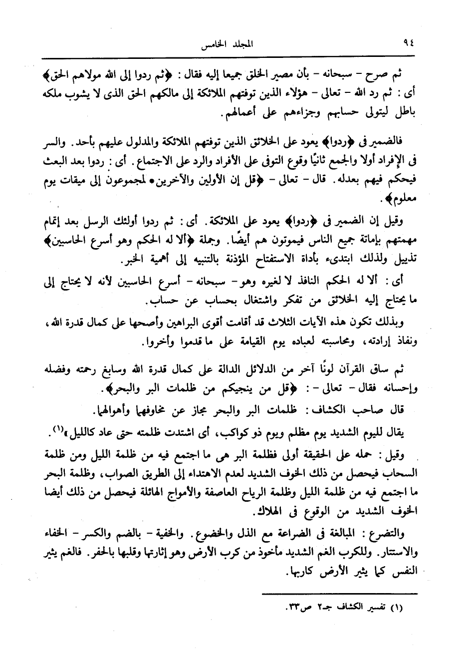 فالضمير في رُدُّوا يعود على الخلائق الذين توفتهم الملائكة والمدلول عليهم بأحد. والسر في الإفراد أولا والجمع ثانيا وقوع التوفي على الأفراد والرد على الاجتماع. أى: ردوا بعد البعث فيحكم فيهم بعدله. قال- تعالى- قُلْ إِنَّ الْأَوَّلِينَ وَالْآخِرِينَ لَمَجْمُوعُونَ إِلى مِيقاتِ يَوْمٍ مَعْلُومٍ.