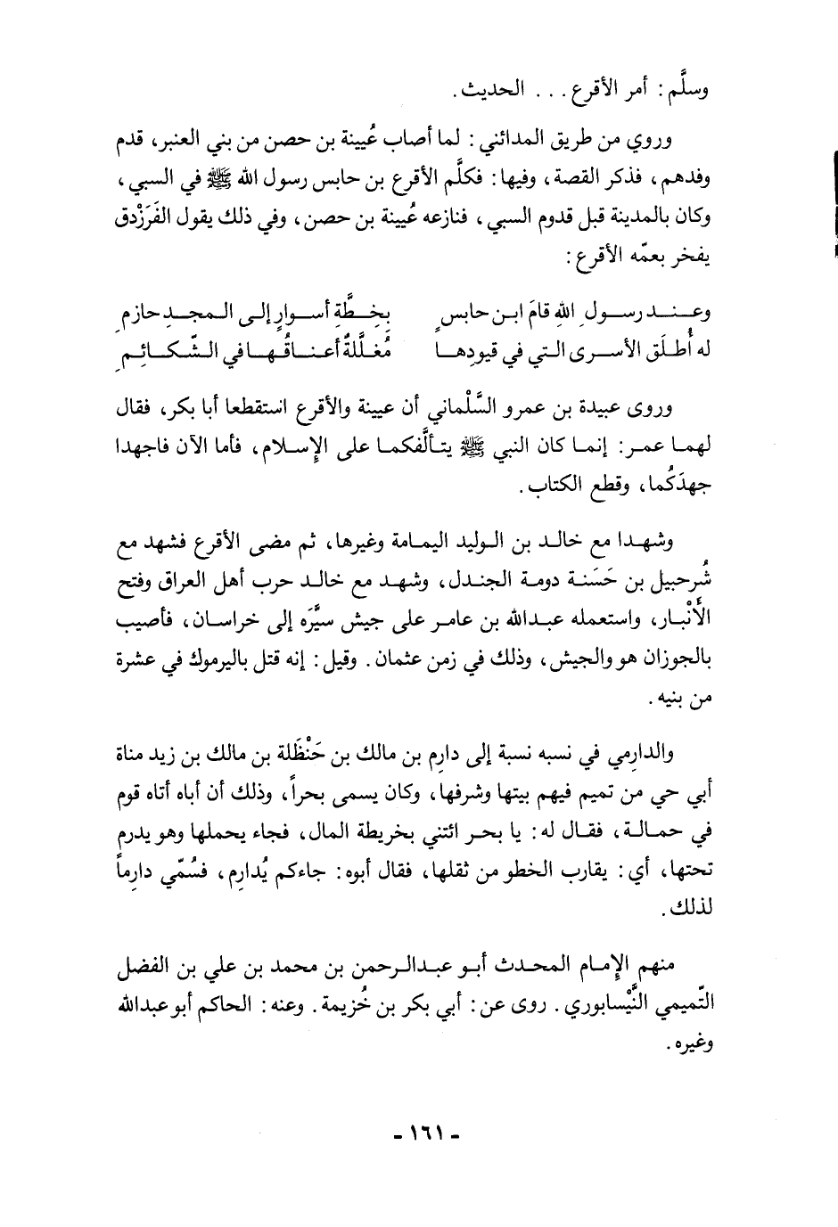 وعند رسولِ اللهِ قامَ ابن حابسٍ ... بخِطَّةِ أسوارٍ إلى المجدِ حازمِ