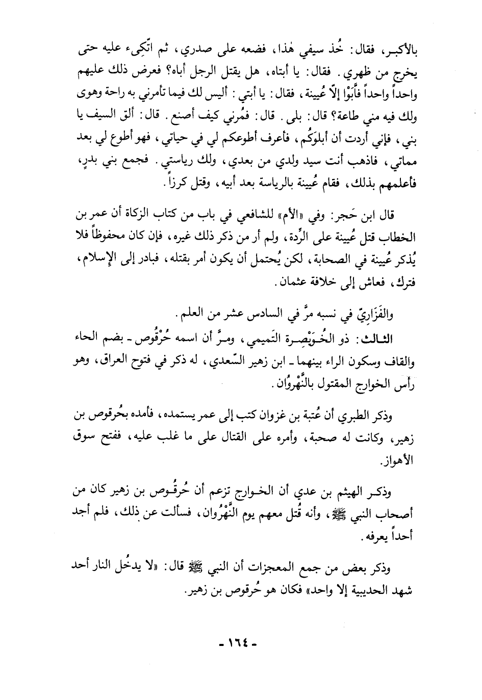 وذكر بعض من جمع المعجزات أن النبي -صلى الله عليه وسلم- قال: "لا يدخُل النار أحد شهد الحديبية إلا واحد" فكان هو حُرقوص بن زهير.
