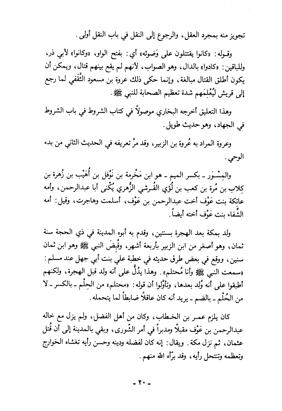 وقوله: "كانوا يقتتلون على وَضوئه" أي: بفتح الواو، "وكانوا" لأبي ذر، وللباقين: "كادوا" بالدال، وهو الصواب؛ لأنهم لم يقع بينهم قتال، ويمكن أن يكون أطلق القتال مبالغة، وإنما حكى ذلك عروة بن مسعود الثَّقَفي لما رجع إلى قريش ليُعْلِمَهم شدة تعظيم الصحابة للنبي -صلى الله عليه وسلم-.