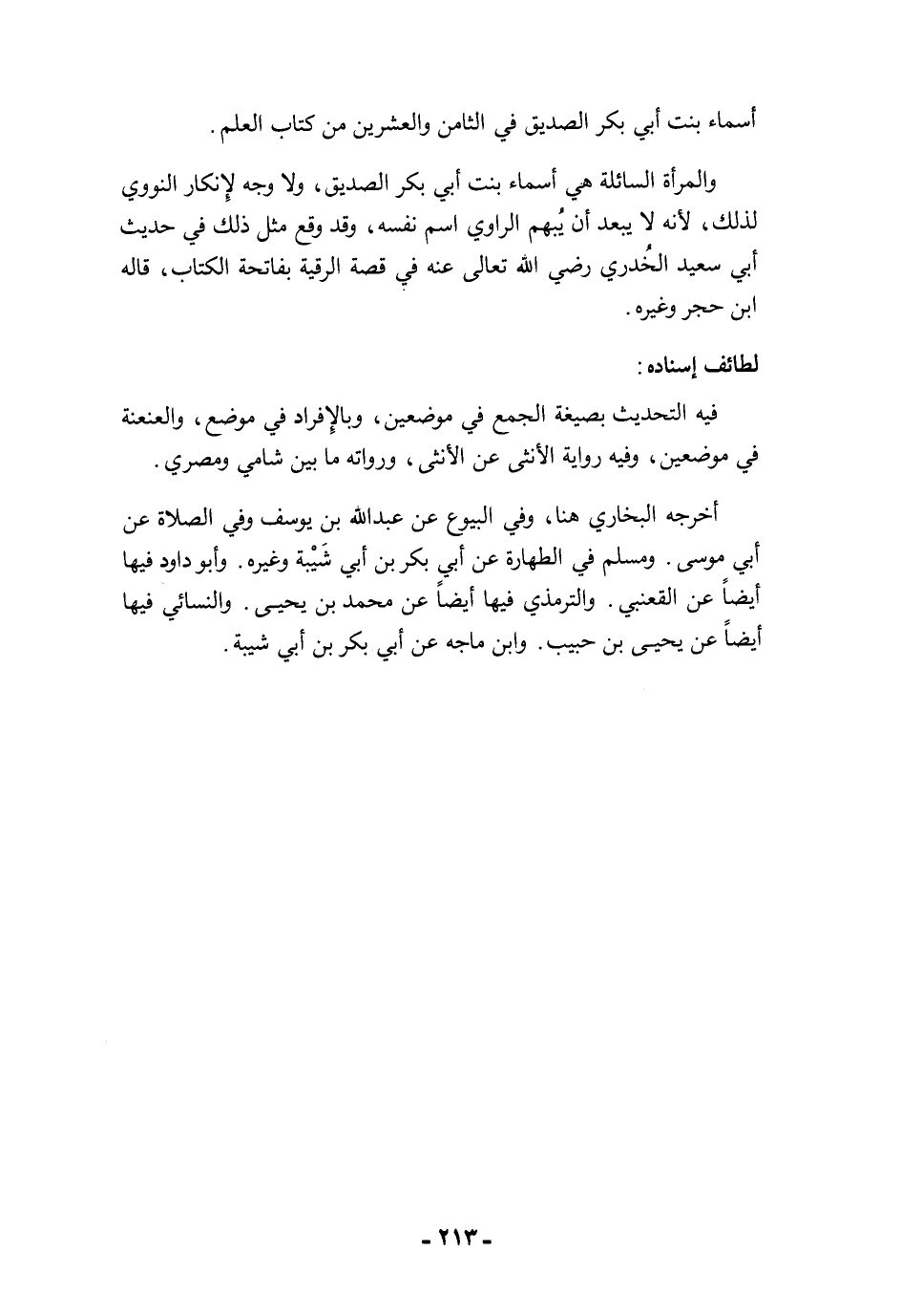 أسماء بنت أبي بكر الصديق في الثامن والعشرين من كتاب العلم.