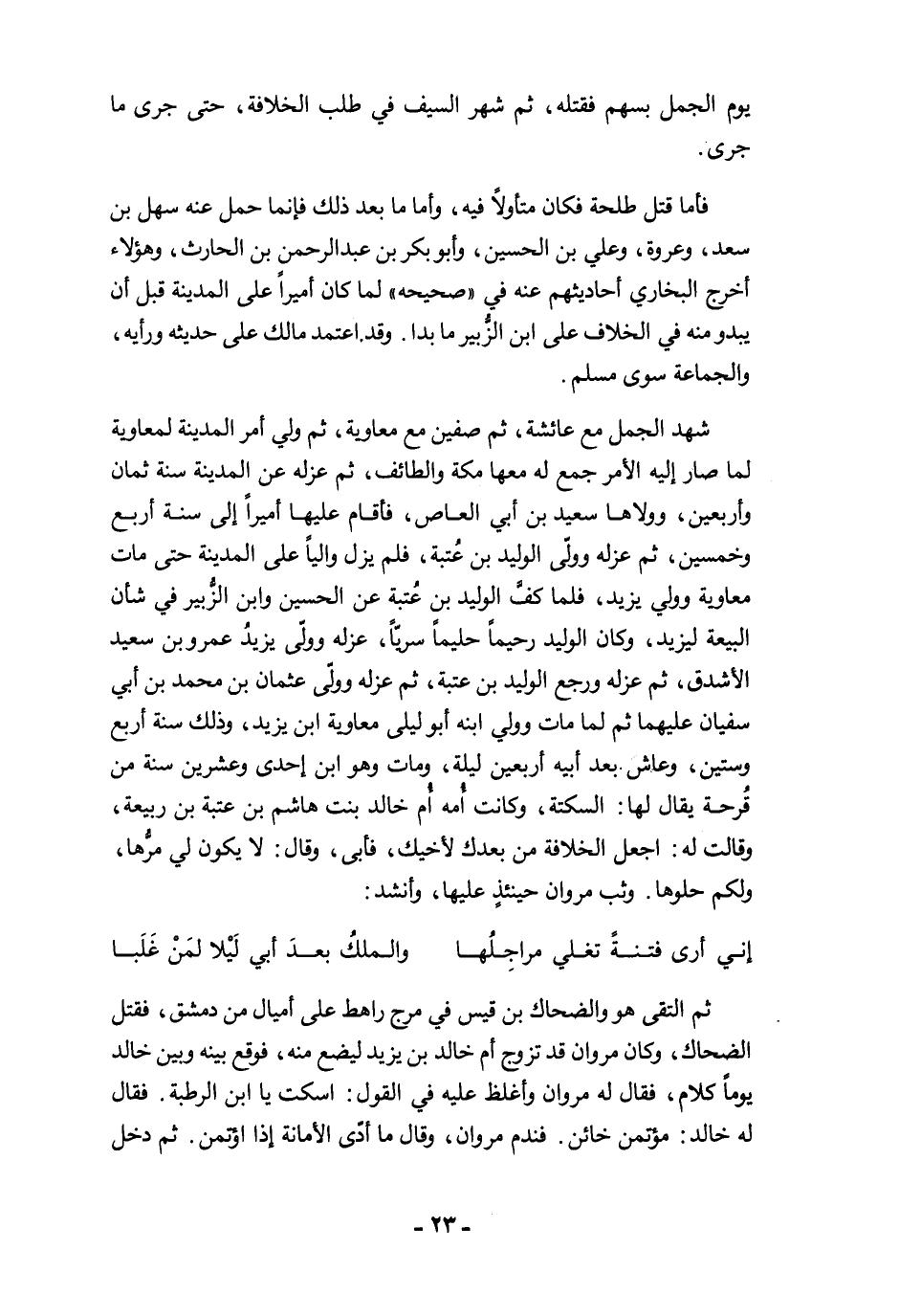 يوم الجمل بسهم فقتله، ثم شهر السيف في طلب الخلافة، حتى جرى ما جرى.
