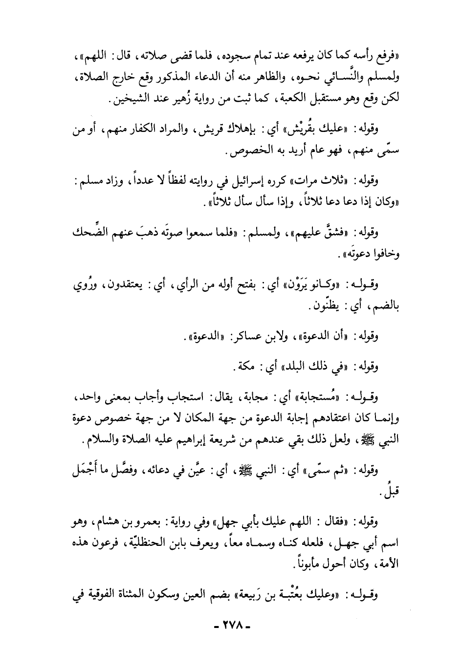 "فرفع رأسه كما كان يرفعه عند تمام سجوده، فلما قضى صلاته، قال: اللهم"، ولمسلم والنَّسائي خوه، والظاهر منه أن الدعاء المذكور وقع خارج الصلاة، لكن وقع وهو مستقبل الكعبة، كما ثبت من رواية زُهير عند الشيخين.