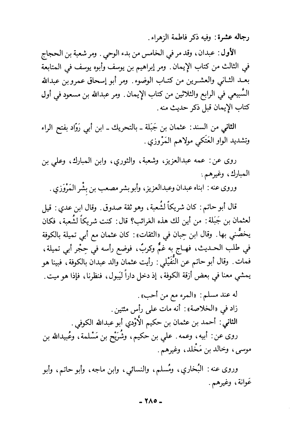رجاله عشرة: وفيه ذكر فاطمة الزهراء.