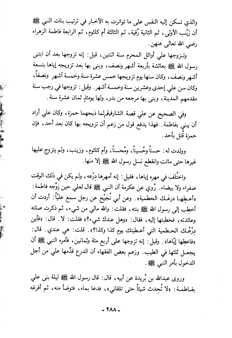 وفي الصحيح عن علي قصة الشارفية لما ذبحهما حمزة، وكان علي أراد أن يبني بفاطمة. فهذا يدفع قول من زعم أن تزويجه بها كان بعد أحد، فإن حمزة قُتل بأحد.