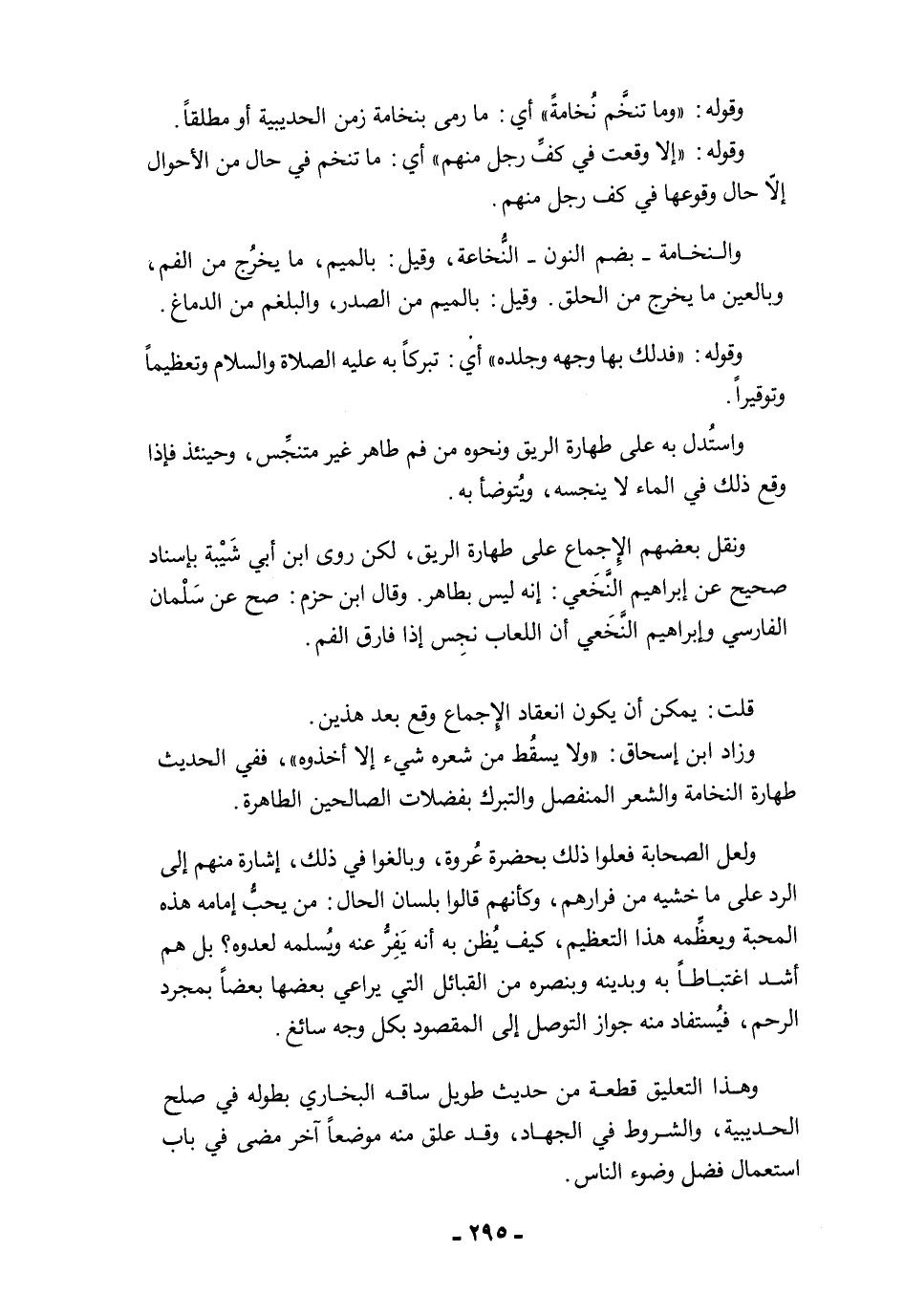 وقوله: "وما تنخَّم نُخامةً" أي: ما رمى بنخامة زمن الحديبية أو مطلقًا.