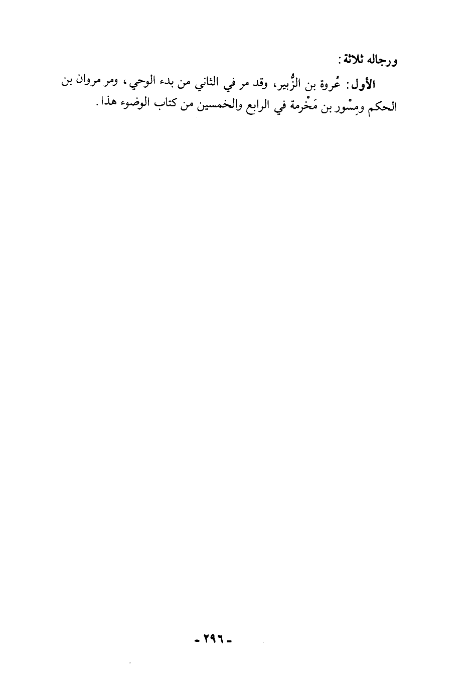 الأول: عُروة بن الزُّبير، وقد مر في الثاني من بدء الوحي، ومر مروان بن الحكم ومِسْور بن مَخْرمة في الرابع والخمسين من كتاب الوضوء هذا.
