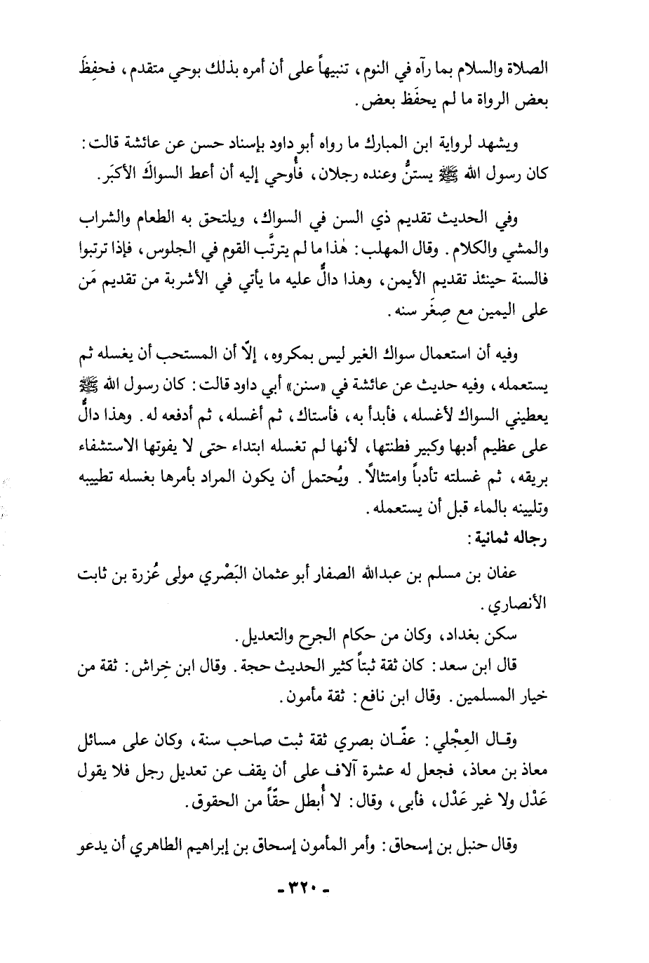 ويشهد لرواية ابن المبارك ما رواه أبو داود بإسناد حسن عن عائشة قالت: كان رسول الله -صلى الله عليه وسلم- يستنُّ وعنده رجلان، فأُوحي إليه أن أعط السواكَ الأكبَر.
