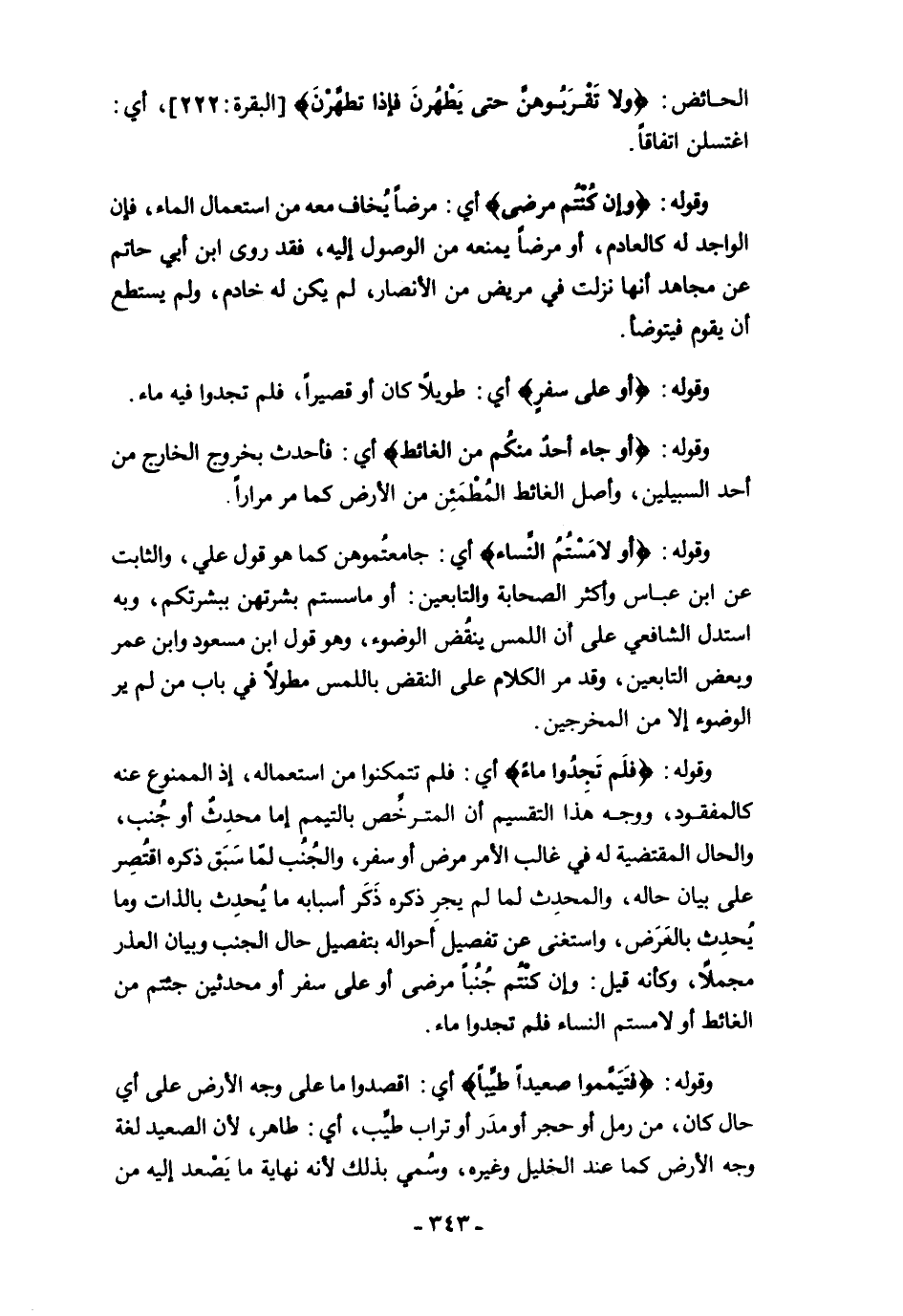 الحائض: {وَلَا تَقْرَبُوهُنَّ حَتَّى يَطْهُرْنَ فَإِذَا تَطَهَّرْنَ} [البقرة: 222]، أي: اغتسلن اتفاقًا.