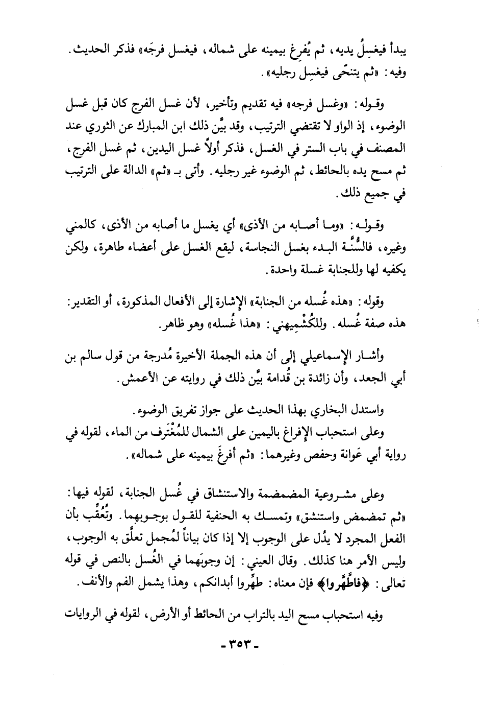 وعلى استحباب الإِفراغ باليمين على الشمال للمُغْتَرف من الماء، لقوله في رواية أبي عَوانة وحفص وغيرهما: "ثم أفرغَ بيمينه على شماله".