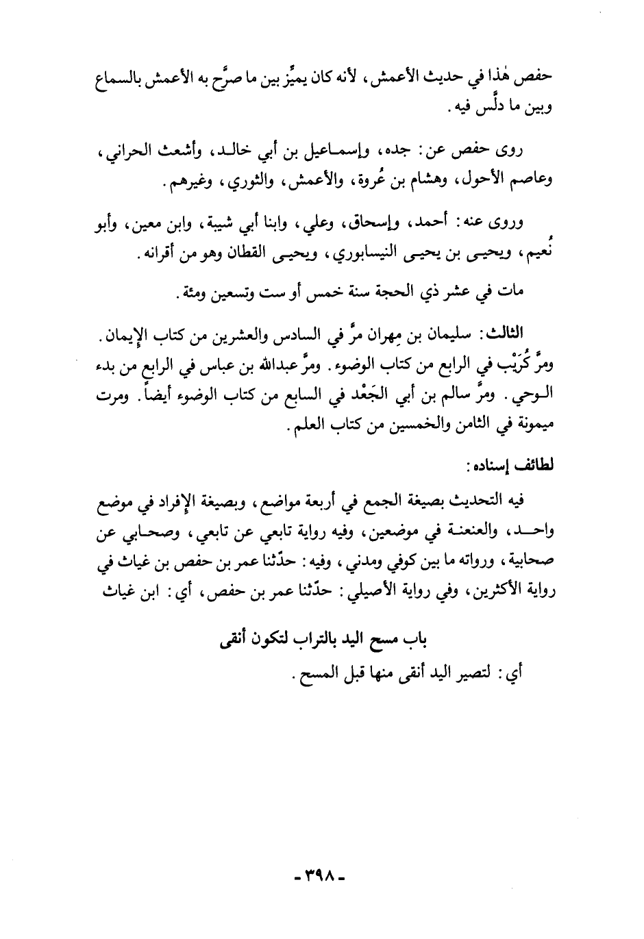 الثالث: سليمان بن مِهران مرَّ في السادس والعشرين من كتاب الإيمان. ومرَّ كُرَيْب في الرابع من كتاب الوضوء. ومرَّ عبد الله بن عباس في الرابع من بدء الوحي. ومرَّ سالم بن أبي الجَعْد في السابع من كتاب الوضوء أيضًا. ومرت ميمونة في الثامن والخمسين من كتاب العلم.