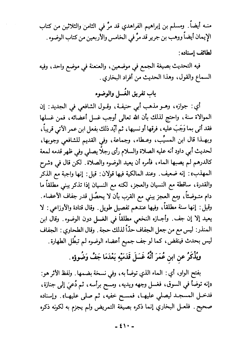 ويُذْكَرُ عنِ ابنِ عُمَرَ أَنَّهُ غَسَلَ قَدَمَيْهِ بَعْدَمَا جَفَّ وَضُوؤه.