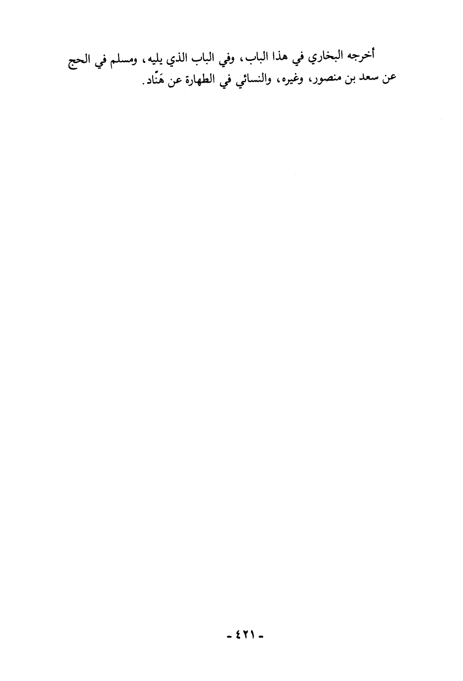 أخرجه البخاري في هذا الباب، وفي الباب الذي يليه، ومسلم في الحج عن سعد بن منصور، وغيره، والنسائي في الطهارة عن هَنّاد.