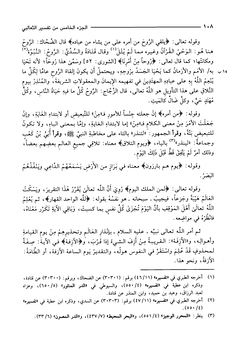 كتاب تفسير الثعالبي = الجواهر الحسان في تفسير القرآن (اسم الجزء: 5)