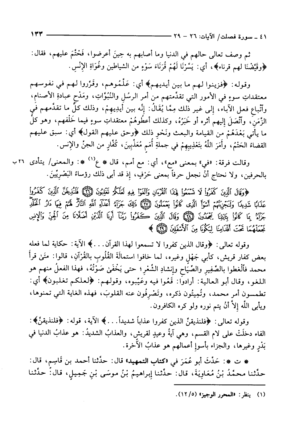 وَقالَ الَّذِينَ كَفَرُوا لا تَسْمَعُوا لِهذَا الْقُرْآنِ وَالْغَوْا فِيهِ لَعَلَّكُمْ تَغْلِبُونَ (26) فَلَنُذِيقَنَّ الَّذِينَ كَفَرُوا عَذاباً شَدِيداً وَلَنَجْزِيَنَّهُمْ أَسْوَأَ الَّذِي كانُوا يَعْمَلُونَ (27) ذلِكَ جَزاءُ أَعْداءِ اللَّهِ النَّارُ لَهُمْ فِيها دارُ الْخُلْدِ جَزاءً بِما كانُوا بِآياتِنا يَجْحَدُونَ (28) وَقالَ الَّذِينَ كَفَرُوا رَبَّنا أَرِنَا الَّذَيْنِ أَضَلاَّنا مِنَ الْجِنِّ وَالْإِنْسِ نَجْعَلْهُما تَحْتَ أَقْدامِنا لِيَكُونا مِنَ الْأَسْفَلِينَ (29)