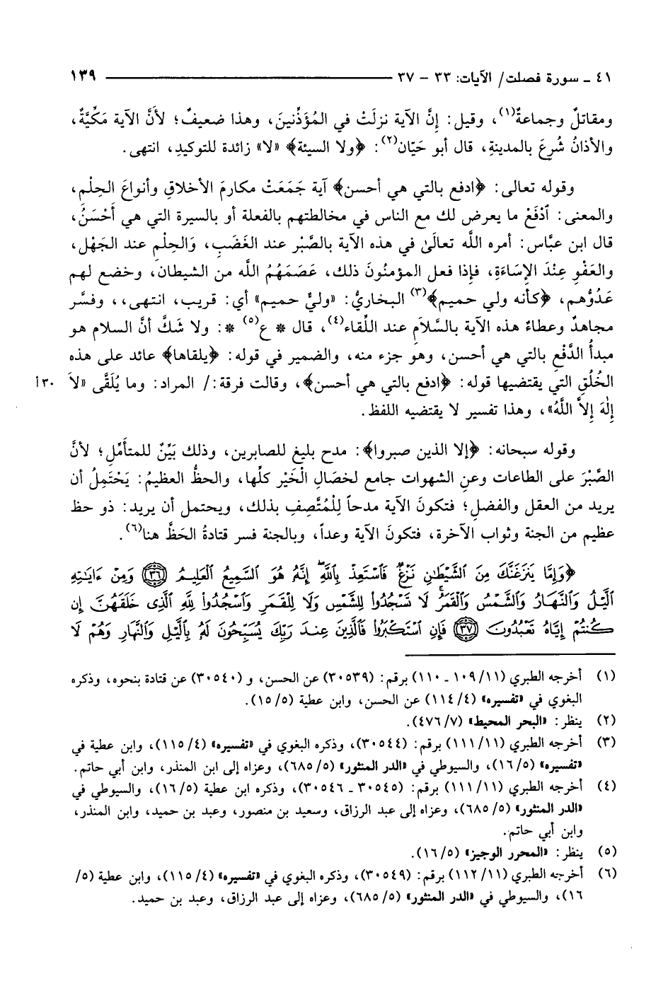 وَإِمَّا يَنْزَغَنَّكَ مِنَ الشَّيْطانِ نَزْغٌ فَاسْتَعِذْ بِاللَّهِ إِنَّهُ هُوَ السَّمِيعُ الْعَلِيمُ (36) وَمِنْ آياتِهِ اللَّيْلُ وَالنَّهارُ وَالشَّمْسُ وَالْقَمَرُ لا تَسْجُدُوا لِلشَّمْسِ وَلا لِلْقَمَرِ وَاسْجُدُوا لِلَّهِ الَّذِي خَلَقَهُنَّ إِنْ كُنْتُمْ إِيَّاهُ تَعْبُدُونَ (37) فَإِنِ اسْتَكْبَرُوا فَالَّذِينَ عِنْدَ رَبِّكَ يُسَبِّحُونَ لَهُ بِاللَّيْلِ وَالنَّهارِ وَهُمْ لا يَسْأَمُونَ (38) وَمِنْ آياتِهِ أَنَّكَ تَرَى الْأَرْضَ خاشِعَةً فَإِذا أَنْزَلْنا عَلَيْهَا الْماءَ اهْتَزَّتْ وَرَبَتْ إِنَّ الَّذِي أَحْياها لَمُحْيِ الْمَوْتى إِنَّهُ عَلى كُلِّ شَيْءٍ قَدِيرٌ (39)