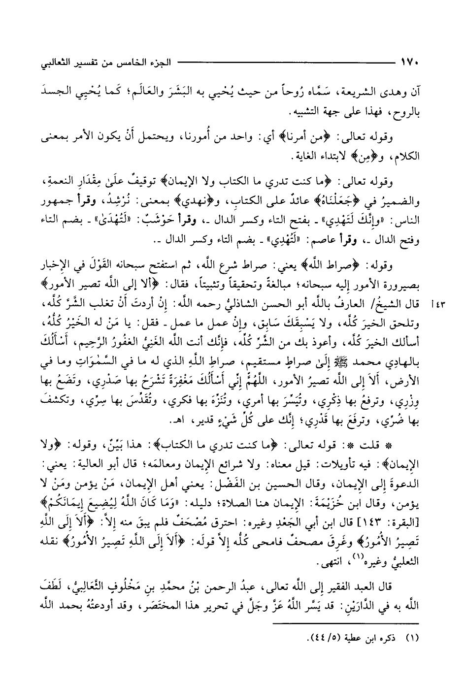 قال العبد الفقير إلى الله تعالى، عبد الرحمن بن محمد بن مخلوف الثعالبي لطف الله به في الدارين: قد يَسَّر اللَّهُ عَزَّ وجَلَّ في تحرير هذا المختصر، وقد أودعته بحمد الله