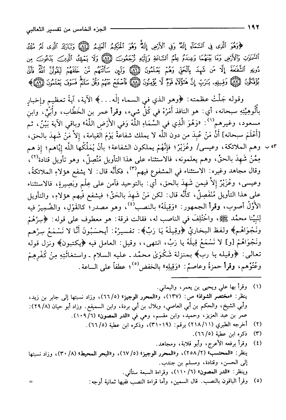 كتاب تفسير الثعالبي = الجواهر الحسان في تفسير القرآن (اسم الجزء: 5)