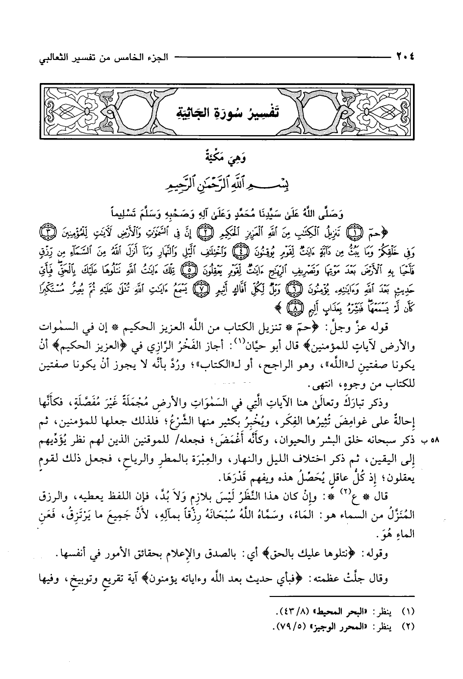 كتاب تفسير الثعالبي = الجواهر الحسان في تفسير القرآن (اسم الجزء: 5)
