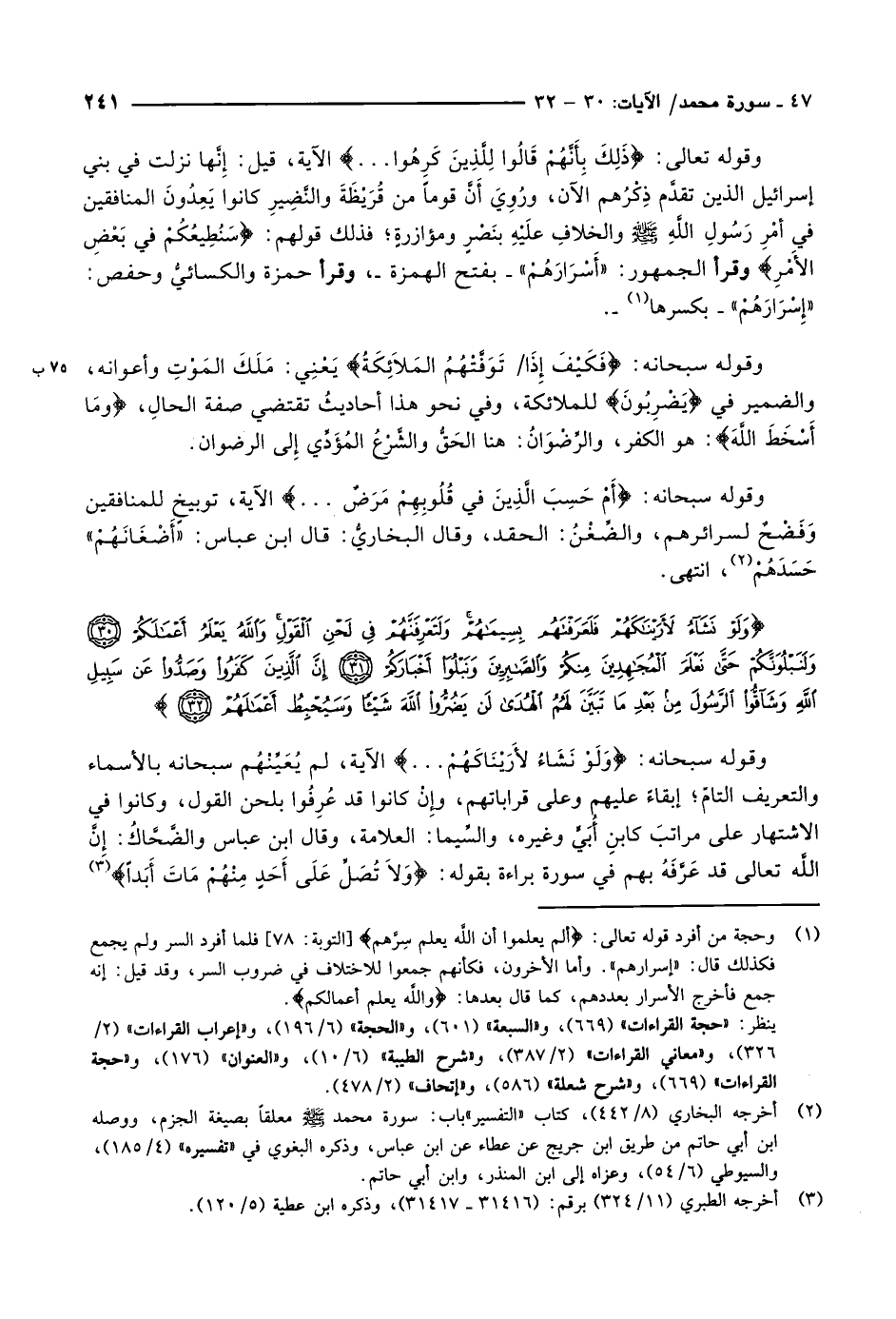 وَلَوْ نَشاءُ لَأَرَيْناكَهُمْ فَلَعَرَفْتَهُمْ بِسِيماهُمْ وَلَتَعْرِفَنَّهُمْ فِي لَحْنِ الْقَوْلِ وَاللَّهُ يَعْلَمُ أَعْمالَكُمْ (30) وَلَنَبْلُوَنَّكُمْ حَتَّى نَعْلَمَ الْمُجاهِدِينَ مِنْكُمْ وَالصَّابِرِينَ وَنَبْلُوَا أَخْبارَكُمْ (31) إِنَّ الَّذِينَ كَفَرُوا وَصَدُّوا عَنْ سَبِيلِ اللَّهِ وَشَاقُّوا الرَّسُولَ مِنْ بَعْدِ ما تَبَيَّنَ لَهُمُ الْهُدى لَنْ يَضُرُّوا اللَّهَ شَيْئاً وَسَيُحْبِطُ أَعْمالَهُمْ (32)