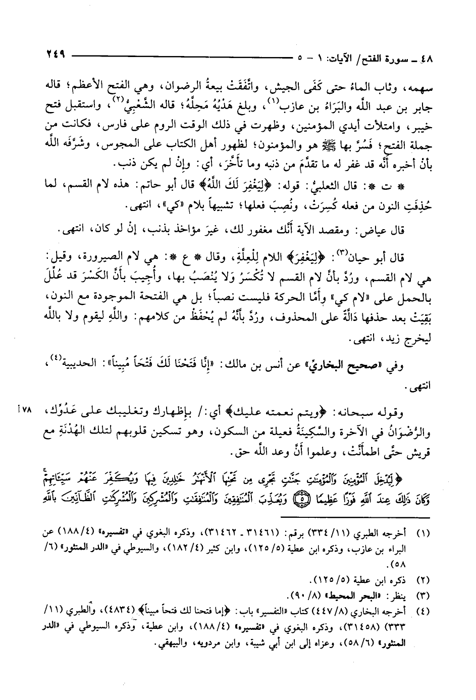 (4) أخرجه البخاري (8/ 447) كتاب «التفسير» باب: إِنَّا فَتَحْنا لَكَ فَتْحاً مُبِيناً (4834) ، والطبري (11/ 333) (31458) ، وذكره البغوي في «تفسيره» (4/ 188) ، وابن عطية، وذكره السيوطي في «الدر المنثور» (6/ 58) ، وعزاه إلى ابن أبي شيبة، وابن مردويه، والبيهقي.