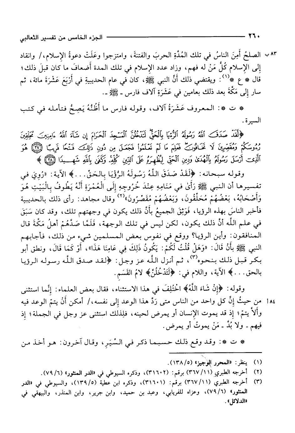 لَقَدْ صَدَقَ اللَّهُ رَسُولَهُ الرُّؤْيا بِالْحَقِّ لَتَدْخُلُنَّ الْمَسْجِدَ الْحَرامَ إِنْ شاءَ اللَّهُ آمِنِينَ مُحَلِّقِينَ رُؤُسَكُمْ وَمُقَصِّرِينَ لا تَخافُونَ فَعَلِمَ ما لَمْ تَعْلَمُوا فَجَعَلَ مِنْ دُونِ ذلِكَ فَتْحاً قَرِيباً (27) هُوَ الَّذِي أَرْسَلَ رَسُولَهُ بِالْهُدى وَدِينِ الْحَقِّ لِيُظْهِرَهُ عَلَى الدِّينِ كُلِّهِ وَكَفى بِاللَّهِ شَهِيداً (28)
