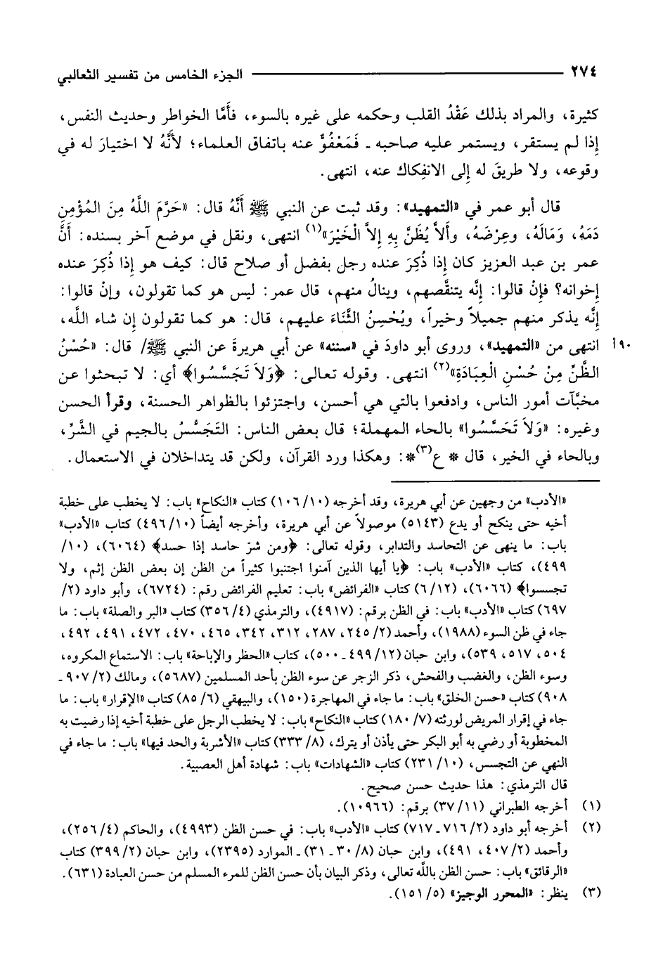 كتاب تفسير الثعالبي = الجواهر الحسان في تفسير القرآن (اسم الجزء: 5)