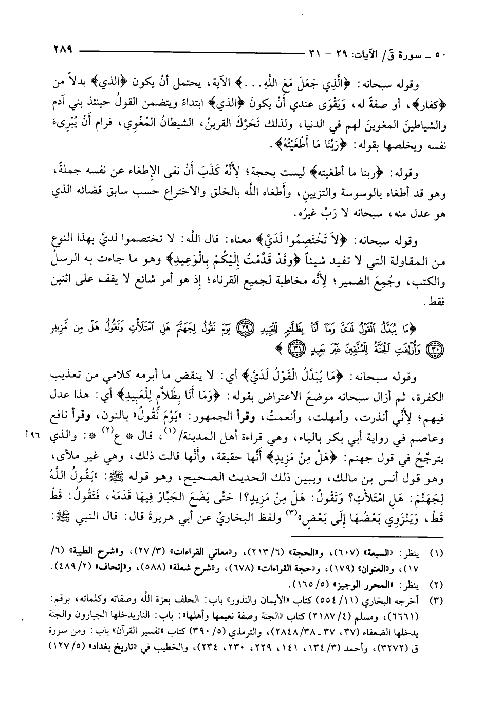 ما يُبَدَّلُ الْقَوْلُ لَدَيَّ وَما أَنَا بِظَلاَّمٍ لِلْعَبِيدِ (29) يَوْمَ نَقُولُ لِجَهَنَّمَ هَلِ امْتَلَأْتِ وَتَقُولُ هَلْ مِنْ مَزِيدٍ (30) وَأُزْلِفَتِ الْجَنَّةُ لِلْمُتَّقِينَ غَيْرَ بَعِيدٍ (31)