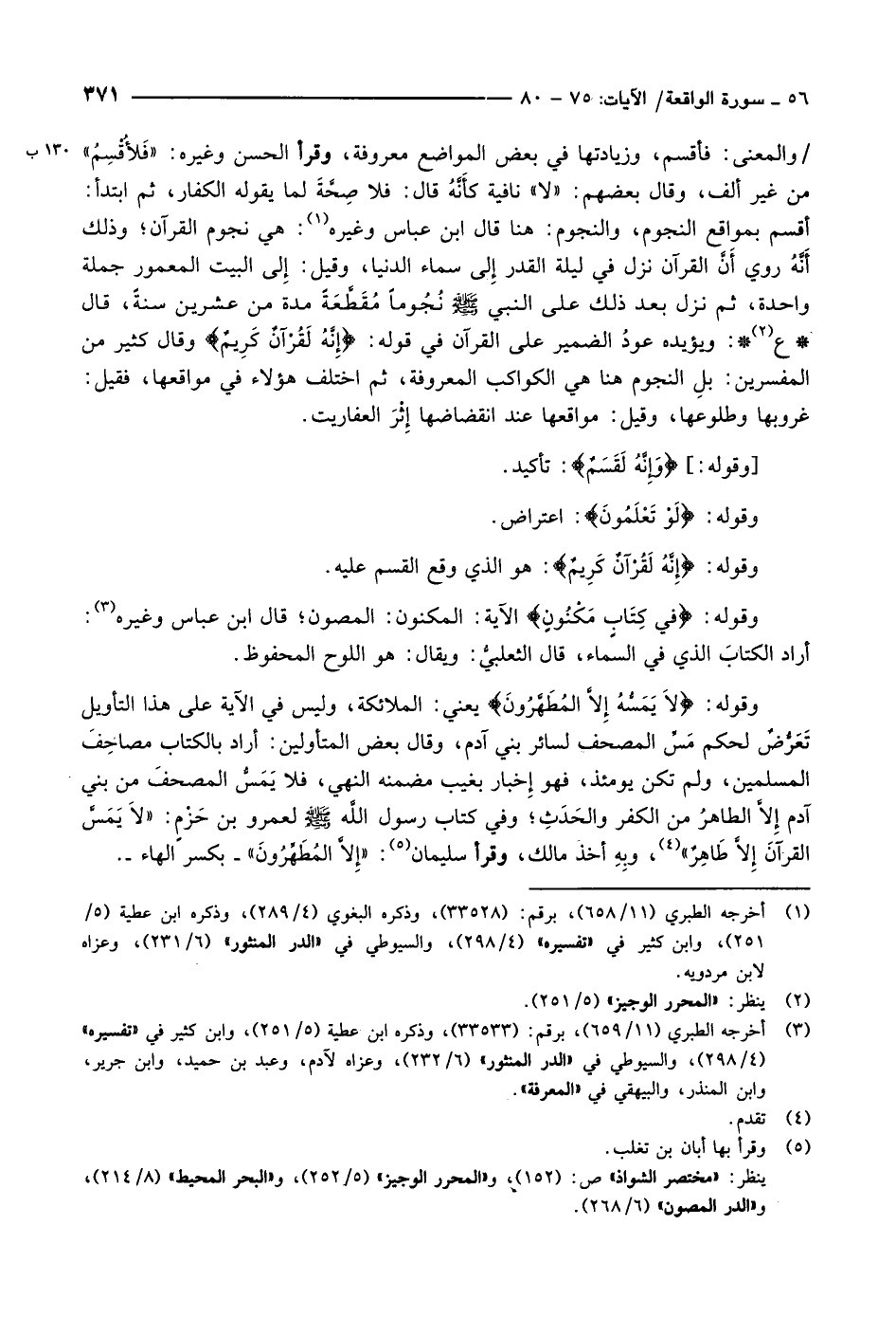 وقوله: فِي كِتابٍ مَكْنُونٍ الآية: المكنون: المصون قال ابن عباس وغيره «3» :