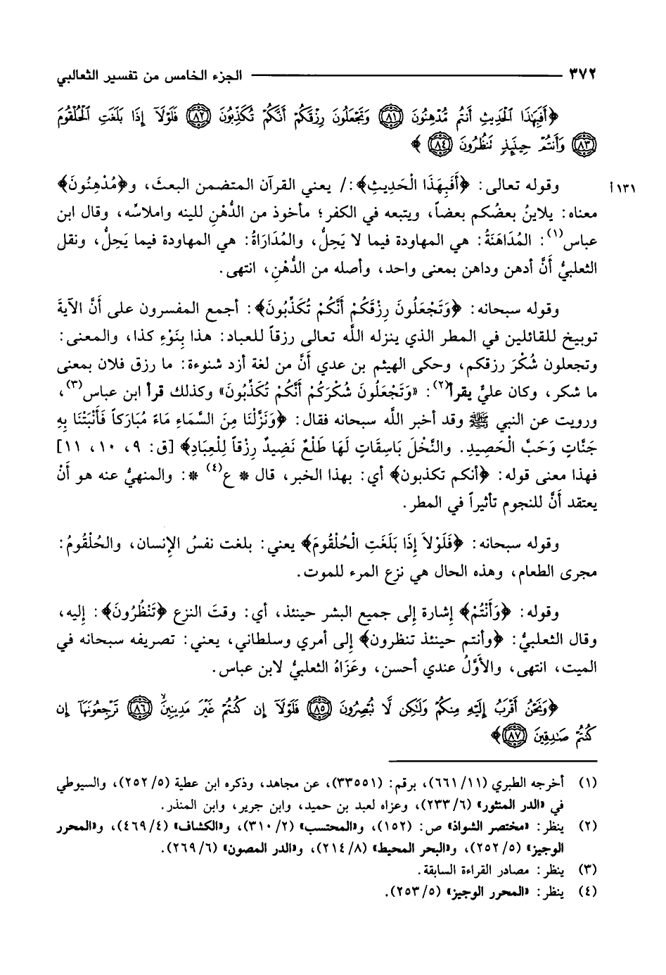 أَفَبِهذَا الْحَدِيثِ أَنْتُمْ مُدْهِنُونَ (81) وَتَجْعَلُونَ رِزْقَكُمْ أَنَّكُمْ تُكَذِّبُونَ (82) فَلَوْلا إِذا بَلَغَتِ الْحُلْقُومَ (83) وَأَنْتُمْ حِينَئِذٍ تَنْظُرُونَ (84)