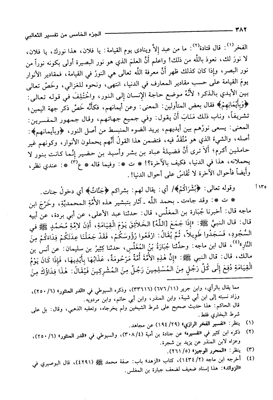 (2) ذكره ابن كثير في «تفسيره» عن جنادة بن أمية (4/ 308) ، والسيوطي في «الدر المنثور» (6/ 250) ، وعزاه لابن المنذر عن يزيد بن شجرة.