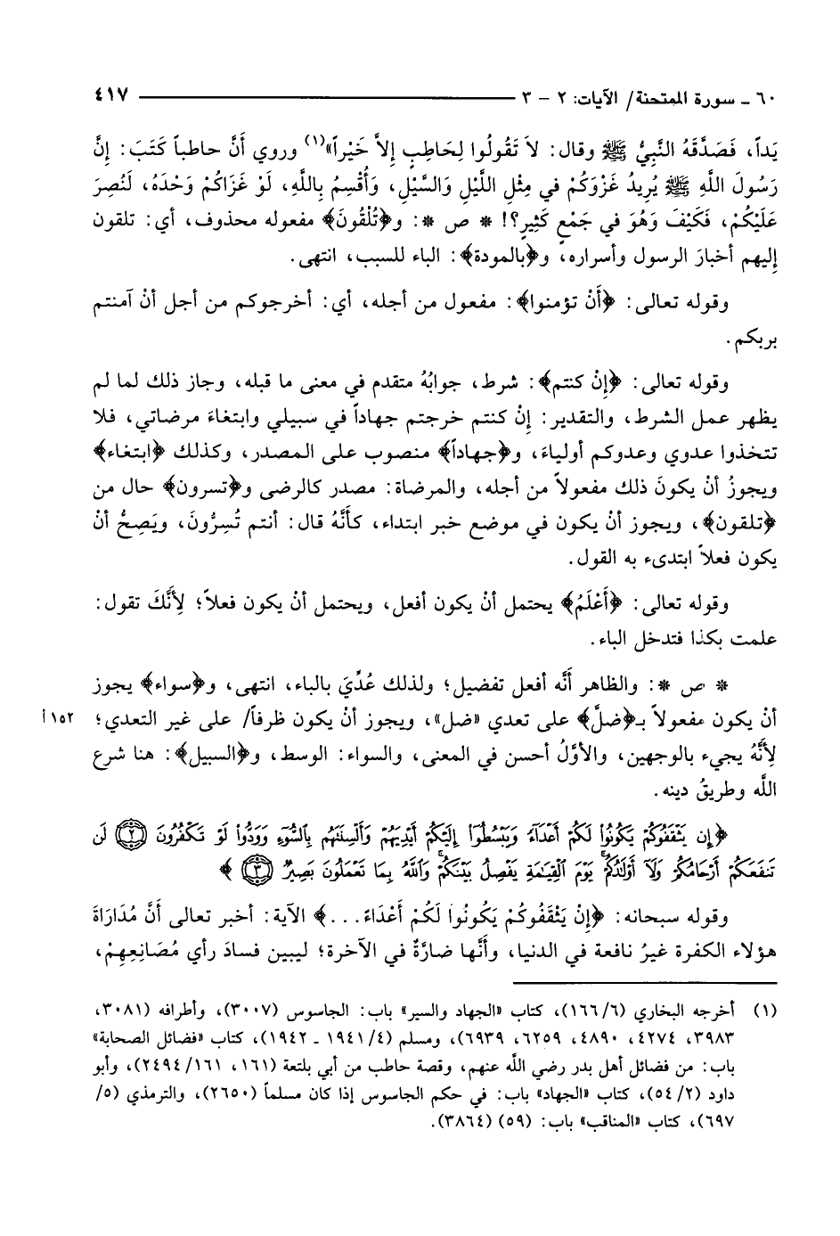 (1) أخرجه البخاري (6/ 166) ، كتاب «الجهاد والسير» باب: الجاسوس (3007) ، وأطرافه (3081، 3983، 4274، 4890، 6259، 6939) ، ومسلم (4/ 1941- 1942) ، كتاب «فضائل الصحابة» باب: من فضائل أهل بدر رضي الله عنهم، وقصة حاطب من أبي بلتعة (161، 161/ 2494) ، وأبو داود (2/ 54) ، كتاب «الجهاد» باب: في حكم الجاسوس إذا كان مسلما (2650) ، والترمذي (5/ 697) ، كتاب «المناقب» باب: (59) (3864) .
