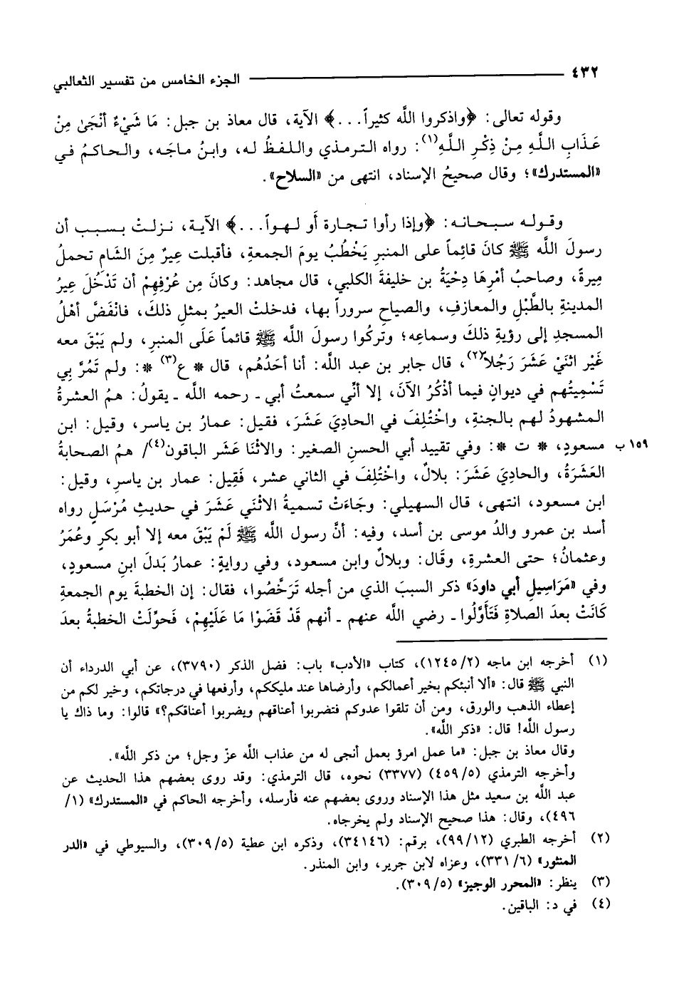 كتاب تفسير الثعالبي = الجواهر الحسان في تفسير القرآن (اسم الجزء: 5)