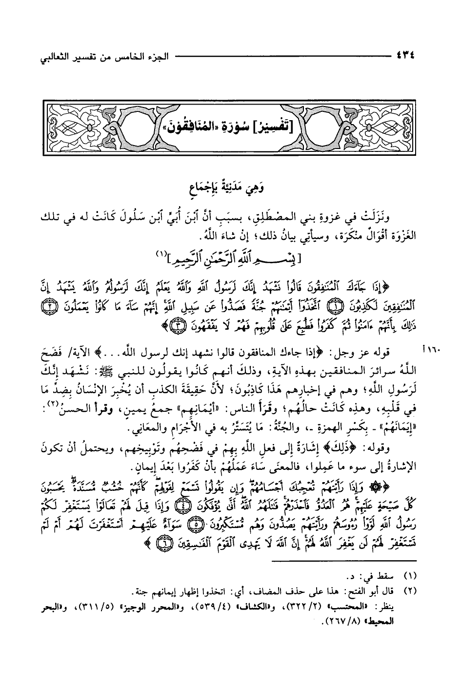 كتاب تفسير الثعالبي = الجواهر الحسان في تفسير القرآن (اسم الجزء: 5)