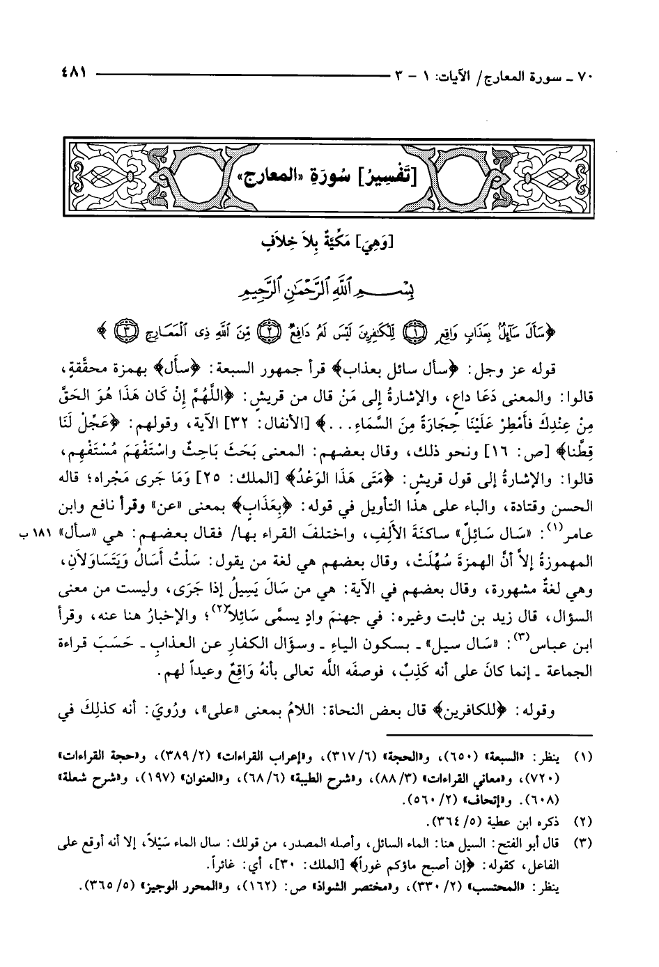 [سورة المعارج (70) : الآيات 1 الى 3]