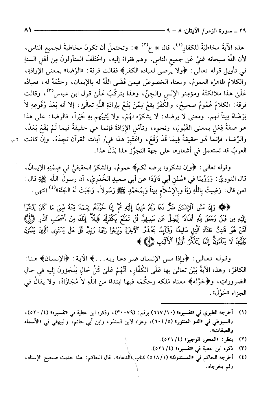 وقوله تعالى: وَإِنْ تَشْكُرُوا يَرْضَهُ لَكُمْ عمومٌ، والشكرُ الحقيقيُّ في ضِمْنِهِ الإيمانُ، قال النوويُّ: وَرُوِّينَا في «سُنَنِ أبي دَاوُدَ» عن أبي سعيد الخدريّ، أن رسول الله صلّى الله عليه وسلّم قال: