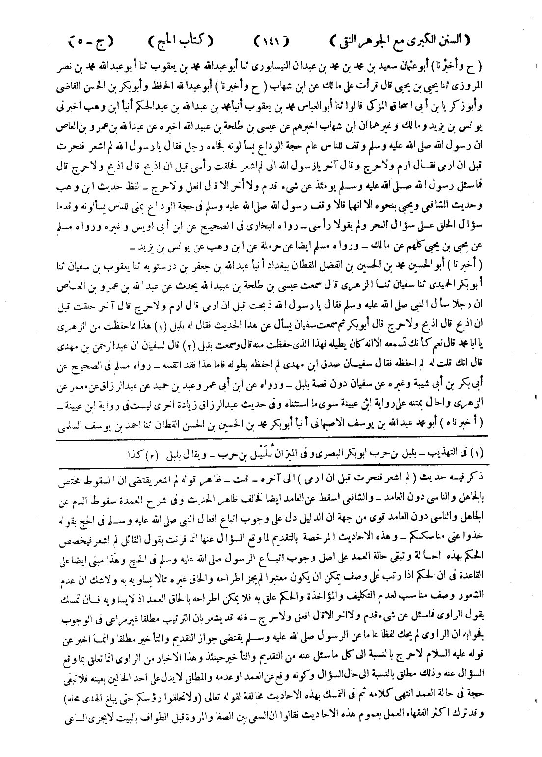 فجوابه ان الرواى لم يحك لفظا عاما عن الرسول صلى الله عليه وسلم يقتضى جواز التقديم والتأخير مطلقا وانما اخبر عن قوله عليه السلام لا حرج بالنسبة إلى كل ما سئل عنه من التقديم والتأخير حينئذ وهذا الا خبرا من الراوى انما تعلق بما وقع السؤال عنه وذلك مطلق بالنسبة إلى حال السؤال وكونه وقع عن العمد أو عدمه والمطلق لا يدل على احد الحالين بعينة فلا تبقى حجة في حالة العمد انتهى كلامه ثم في التمسك بهذه الا حاديث مخالفة لقوله تعالى (ولا تحلقوا رؤسكم حتى يبلغ الهدى محله) وقد ترك اكثر الفقهاء العمل بعموم هذا الا حاديث فقالوا ان السعي بين الصفا والمروة قبل الطواف بالبيت لا يجزى الساعي