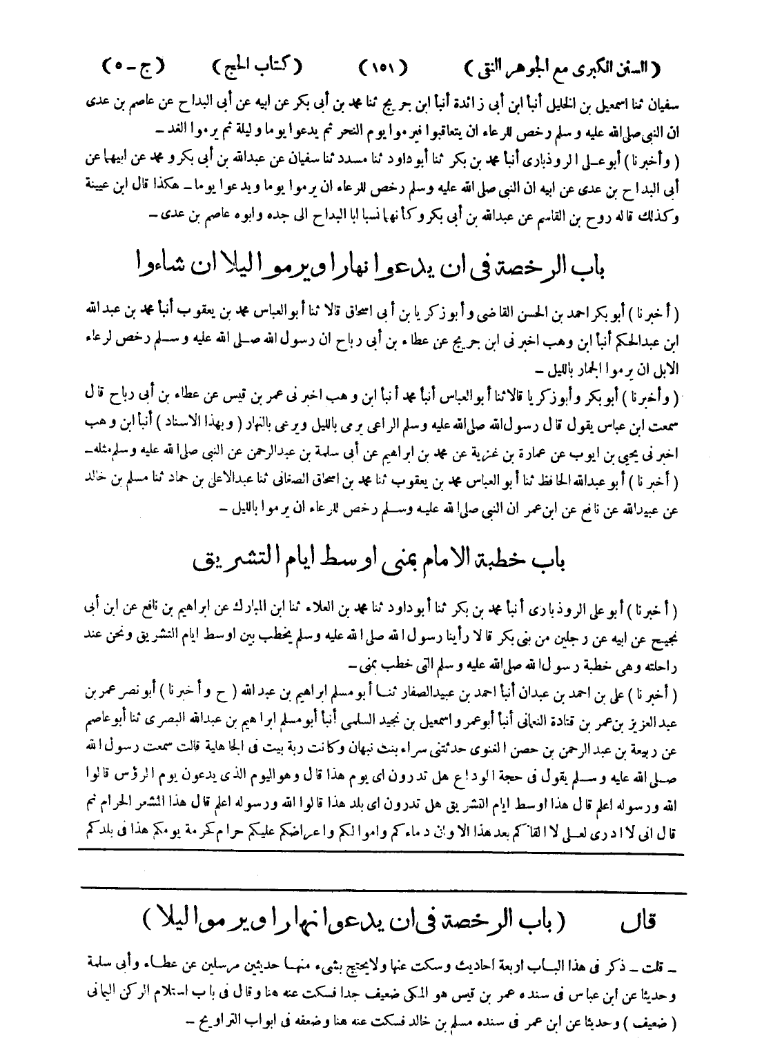قال (باب الرخصة في ان يدعو انها راوير مواليلا) - قلت - ذكر في هذا الباب اربعة احاديث وسكت عنها ولا يحتج بشئ منها حديثين مرسلين عن عطاء وأبى سلمة وحديثا عن ابن عباس في سنده عمر بن قيس هو المكى ضعيف جدا فسكت عنه هنا وقال في باب استلام الركن اليماني (ضعيف) وحديثا عن ابن عمر في سنده مسلم بن خالد فسكت عنه هنا وضعفه في ابواب التراويح -