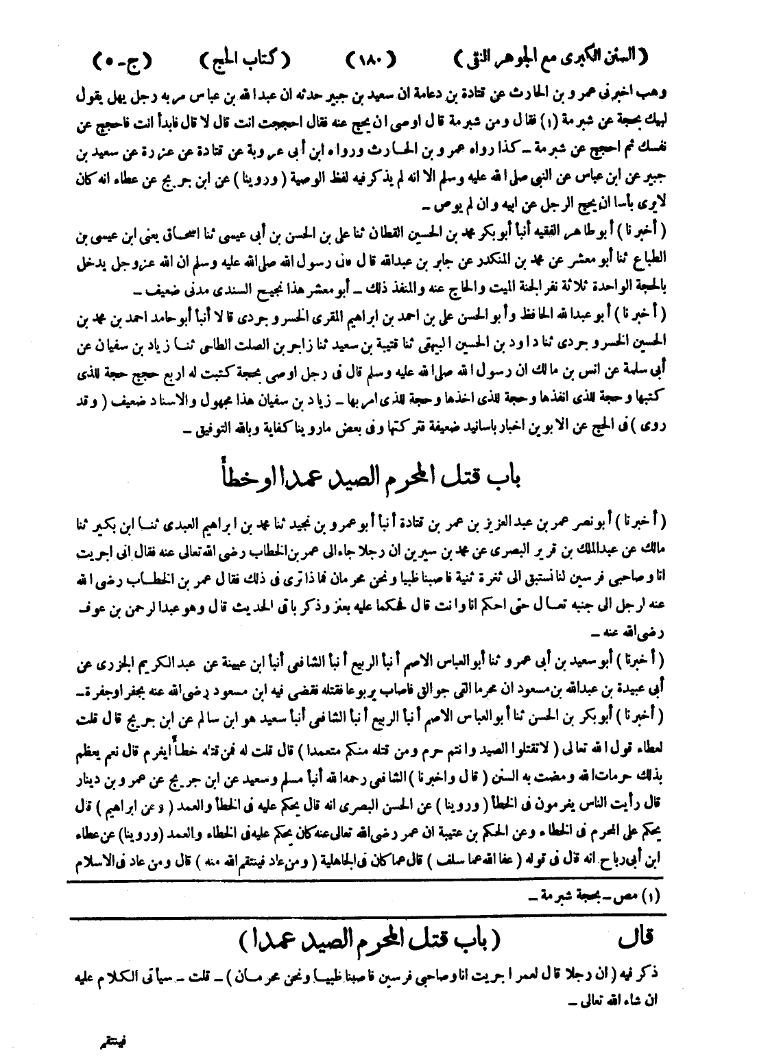 قال (باب قتل المحرم الصيد عمدا) ذكر فيه (ان رجلا قال لعمرا جريت انا وصاحبى فرسين فاصبنا ظبيا ونحن محرمان) - قلت - سيأتي الكلام عليه ان شاء الله تعالى -