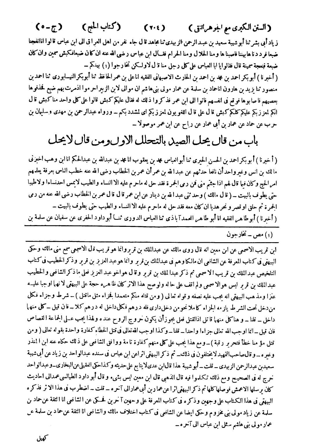 ابن قريب الاصمعي عن ابن معين انه قال روى مالك عن عبد الملك بن قرير وانما هو قريب قال الاصمعي سمع منى مالك وحكى البيهقى في كتاب المعرفة عن الشافعي ان مالكا وهم في عبد الملك بن قرير وانما هو عبد العزيز بن قرير وذكر الخطيب في كتاب التخليص عبد الملك بن قريب الاصمعي ثم ذكر عبد الملك بن قرير وقال هو اخو عبد العزيز ففعلى ما ذكر الشافعي والخطيب عبد الملك بن قرير ليس هو الاصمعي ولم اقف على حاله ولو صح هذا الاثر كان ظاهره حجة عى البيهقى لانهما اوجبا عليه عنزا ومذهب البيهقى انه يجب عليه نصفه وقوله تعالى (ومن قتله منكم متعمدا فجزاء مثل ما قتل) - شرط وجزاء فكل من دخل تحت الشرط يلزمه الجزاء كملا نحو من دخل دارى فله درهم فكل داخل له درهم كلا - فان قيل - كل منهما داخل - قلنا - وهنا كل منهما قاتل إذا القتل فعل يجوز أن يكون خروج الروح عنده ولهذا يجب على الجماعة القصاص فان قيل - انما اوجب الله تعالى جزاءا واحدا - قلنا - وكذا اوجب الله تعالى في قتل الخطاء كفارة واحدة بقوله تعالى (ومن