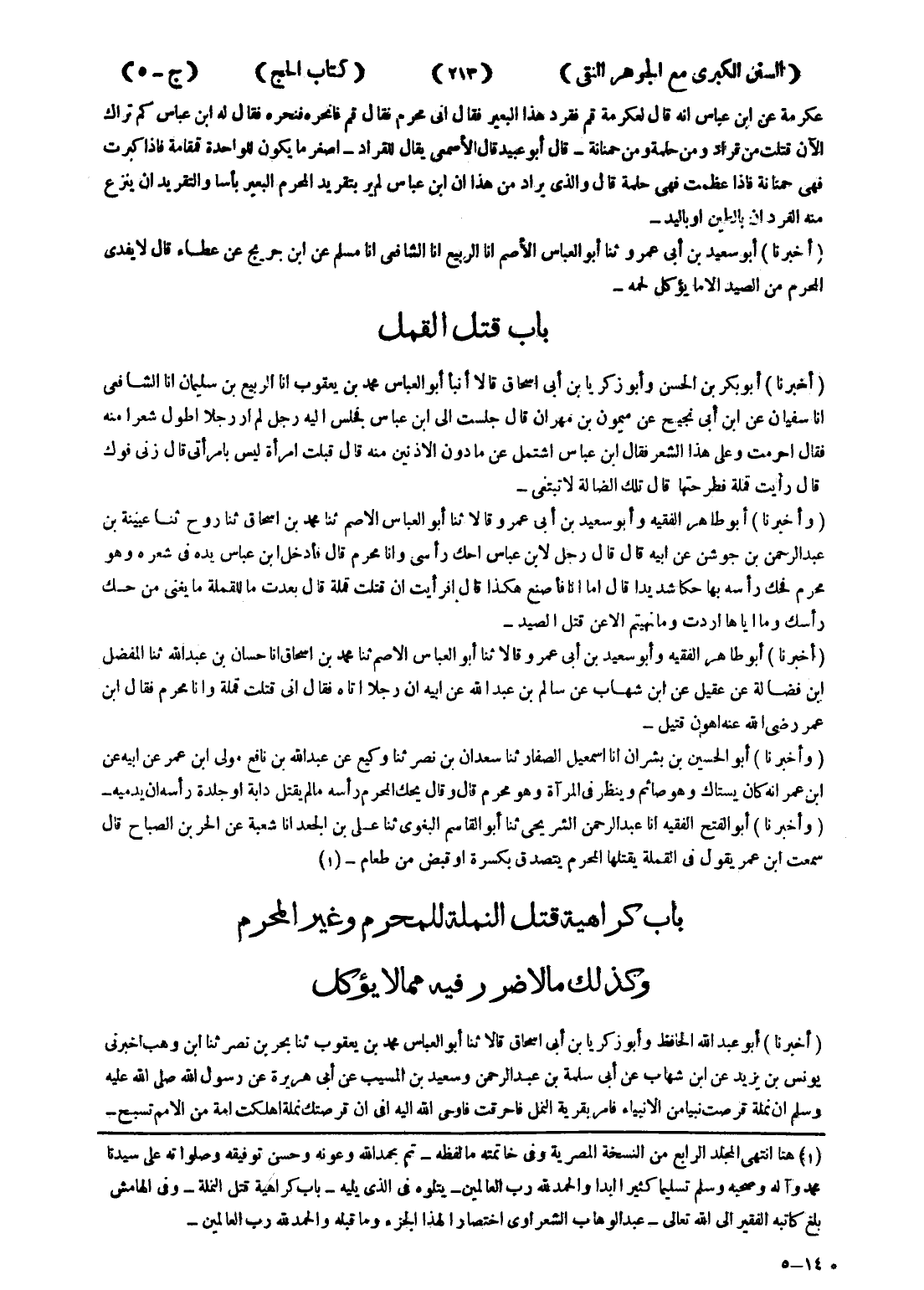 - باب كراهية قتل النملة للمحرم وغير المحرم وكذلك مالاضرر فيه ممالا يؤكل