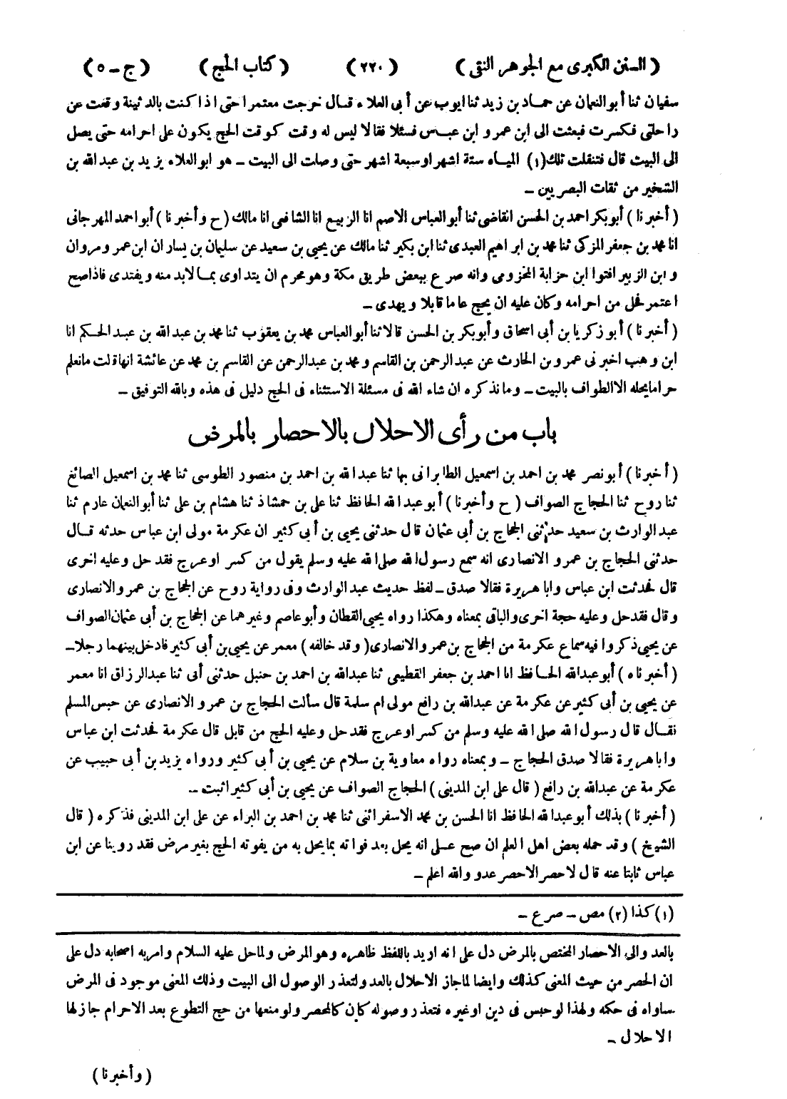 بالعد والى الاحصار المختص بالمرض دل على انه اريد باللفظ ظاهره وهو المرض ولما حل عليه السلام وامر به اصحابه دل على ان الحصر من حيث المعنى كذلك وايضا لما جاز الاحلال بالعد ولتعذر الوصول إلى البيت وذلك المعنى موجود في المرض ساواه في حكمه ولهذا لو حبس في دين أو غيره فتعذر وصوله كان كالمحصر ولو منعها من حج التطوع بعد الا حرام جاز لها الا حلال