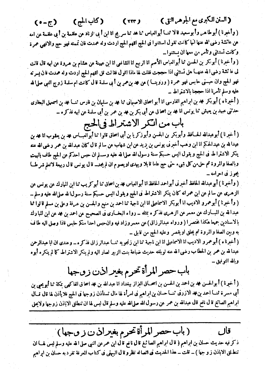 قال (باب حصر المرأة تحرم بغير اذن زوجها)
