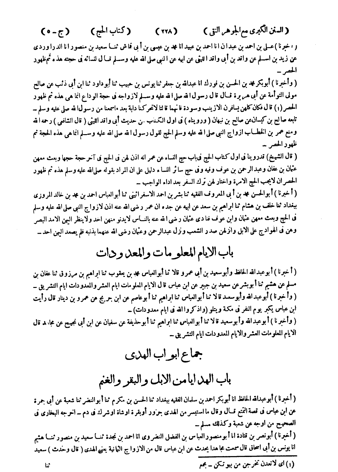 (أخبرنا) أبو عبد الله الحافظ انا أبو بكر احمد بن سلمان الفقيه ببغداد ثنا الحسن بن مكرم ثنا أبو النضر ثنا شعبة عن أبى جمرة عن ابن عباس في قصة التمتع قال وقال ما استيسر من الهدى جزور أو بقرة أو شاة أو شرك في دم - اخرجه البخاري في الصحيح من اوجه عن شعبة وكذلك مسلم