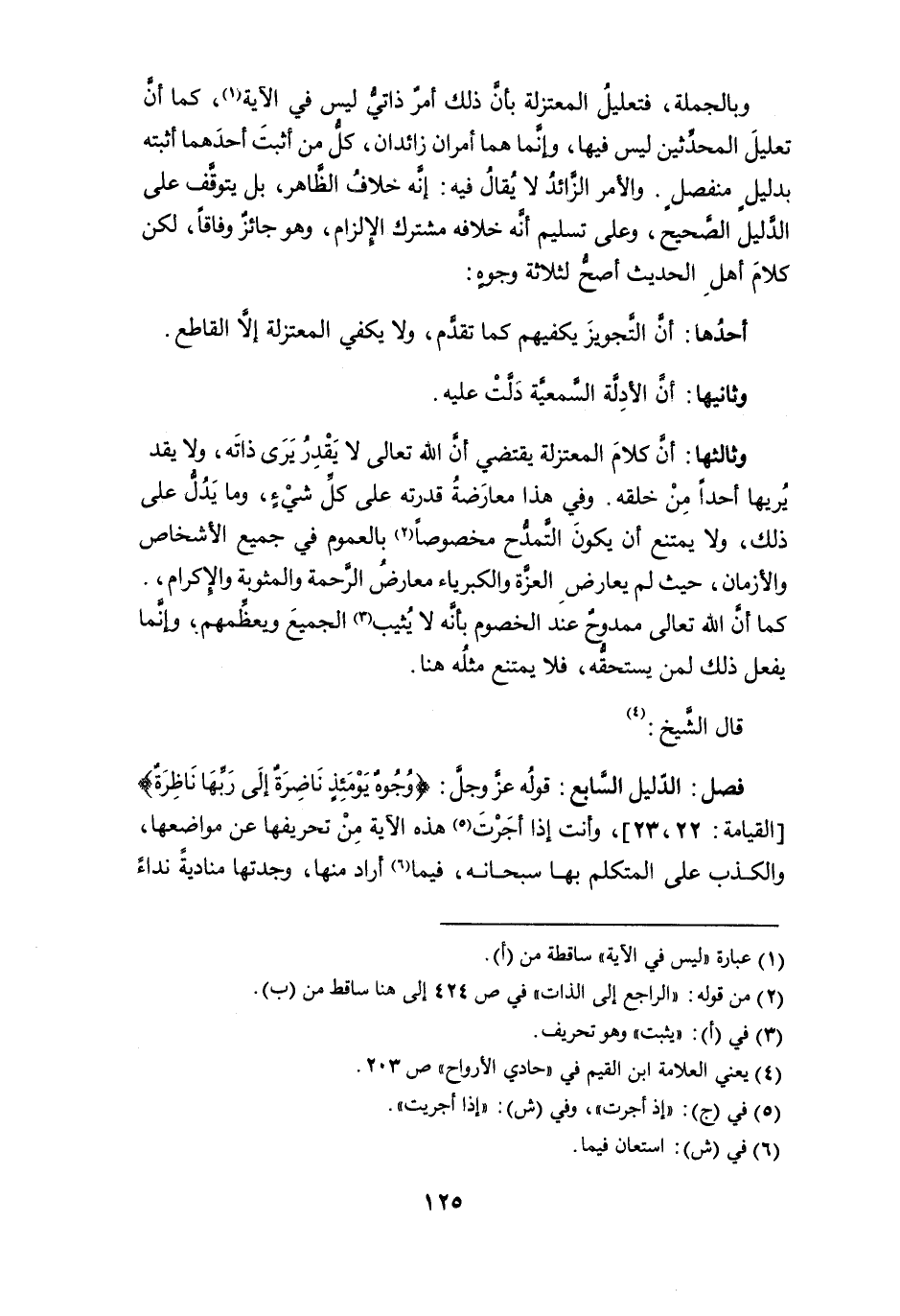وبالجملة، فتعليل المعتزلة بأن ذلك أمرٌ ذاتيٌ ليس في الآية (¬1)، كما أن تعليل المحدِّثين ليس فيها، وإنما هما أمران زائدان، كلُّ من أثبت أحدهما أثبته بدليلٍ منفصلٍ. والأمر الزائد لا يُقالُ فيه: إنه خلافُ الظاهر، بل يتوقف على الدليل الصحيح، وعلى تسليم أنه خلافه مشترك الإلزام، وهو جائزٌ وفاقاً، لكن كلام أهل الحديث أصح لثلاثة وجوهٍ: