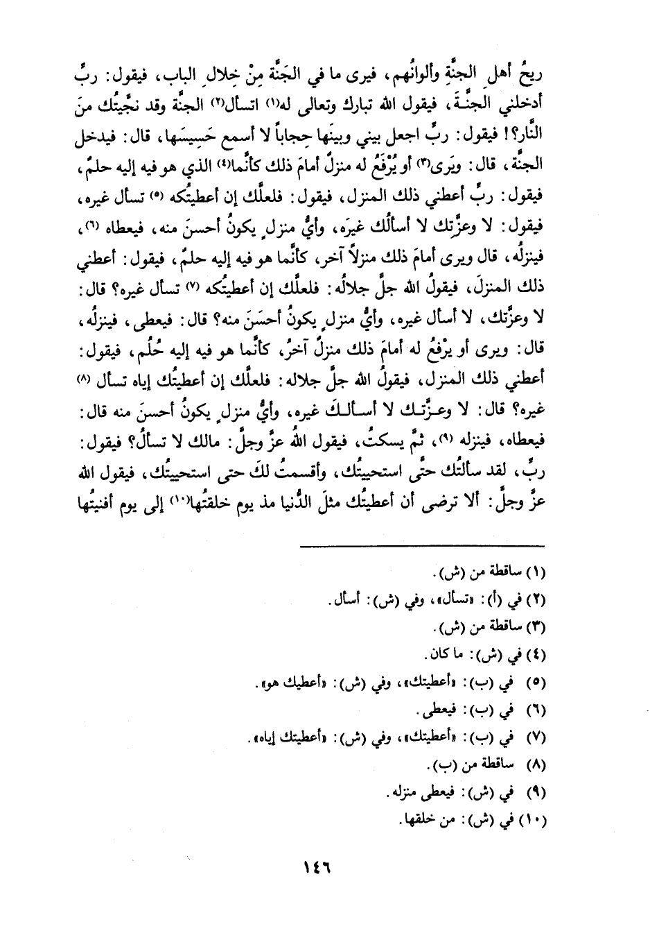 ريحُ أهل الجنة وألوانهم، فيرى ما في الجنة من خلال الباب، قيقول: رب أدخلني الجنة، فيقول الله تبارك وتعالى له (¬1) اتسأل (¬2) الجنة وقد نجَّيتُك من النار؟! فيقول: رب اجعل بيني وبينها حِجاباً لا أسمع حَسِيسَها، قال: فيدخل الجنة، قال: ويرى (¬3) أو يُرفَعُ له منزلٌ أمام ذلك كأنما (¬4) الذي هو فيه إليه حلمٌ، فيقول: ربِّ أعطني ذلك المنزل، فيقول: فلعلك إن أعطيتُكه (¬5) تسأل غيره، فيقول: لا وعزتك لا أسألك غيره، وأيُّ منزلٍ يكون أحسن منه، فيعطاه (¬6)، فينزلُه، قال ويرى أمام ذلك منزلاً آخر، كأنما هو فيه إليه حلمٌ، فيقول: أعطني ذلك المنزل، فيقول الله جل جلاله: فلعلك إن أعطيتُكه (¬7) تسأل غيره؟ قال: لا وعزَّتك، لا أسأل غيره، وأيُّ منزلٍ يكون أحسن منه؟ قال: فيعطى، فينزله، قال: ويرى أو يرفع له أمام ذلك منزلٌ آخر، كأنما هو فيه إليه حُلُم، فيقول: أعطني ذلك المنزل، فيقول الله جل جلاله: فلعلك إن أعطيتك إياه تسأل (¬8) غيره؟ قال: لا وعزتك لا أسألك غيره، وأي منزل يكون أحسن منه قال: فيعطاه، فينزله (¬9)، ثم يسكت، فيقول الله عز وجل: مالك لا تسأل؟ فيقول: ربِّ، لقد سألتُك حتى استحييتُك، وأقسمتُ لك حتى استحييتُك، فيقول الله عزَّ وجلَّ: ألا ترضى أن أعطيتك مثل الدنيا مذ يوم خلقتها (¬10) إلى يوم أفنيتها