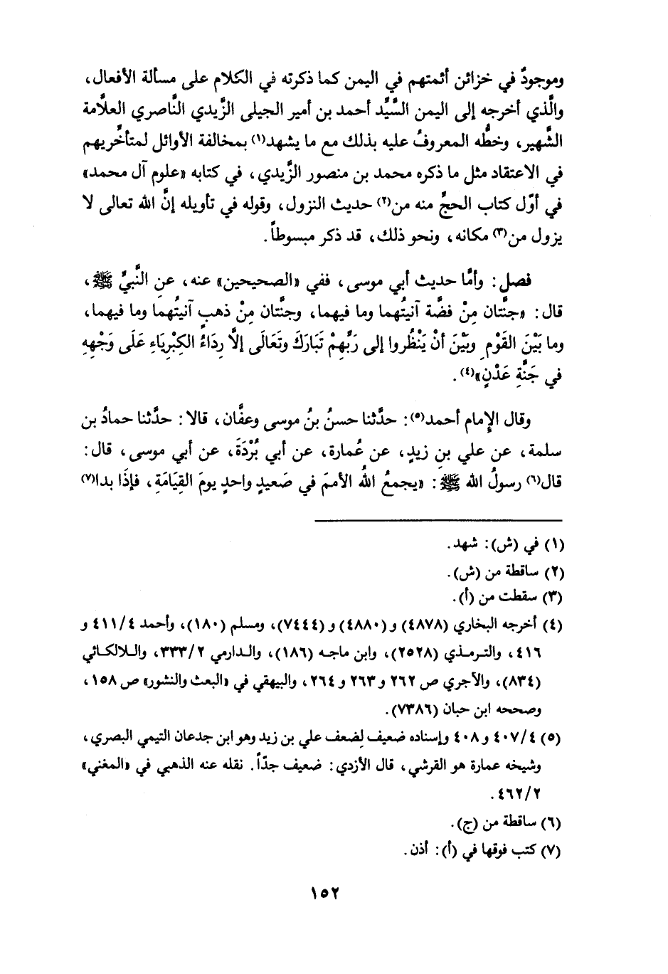 فصل: وأما حديث أبي موسى، ففي " الصحيحين " عنه، عن النبي - صلى الله عليه وسلم -، قال: " جنتان من فضة آنيتهما وما فيهما، وجنتان من ذهبٍ آنيتهما وما فيهما، وما بين القوم وبين أن ينظروا إلى ربهم تبارك وتعالى إلاَّ رداءُ الكبرياء على وجهه في جنة عدنٍ " (¬4).