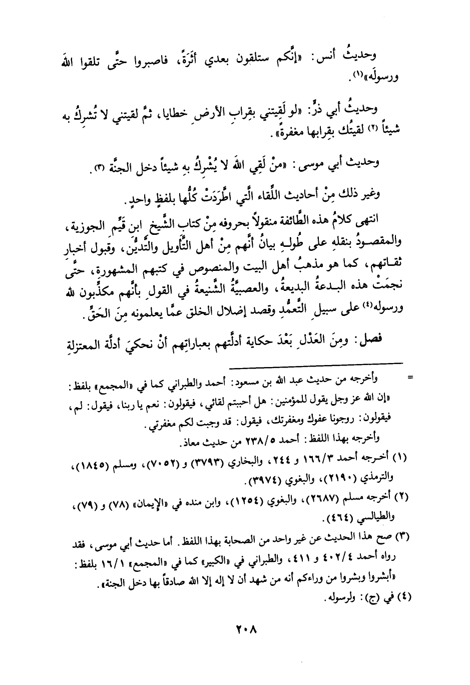 فصل: ومن العدل بعد حكاية أدلتهم بعباراتهم أن نحكيَ أدلة المعتزلة